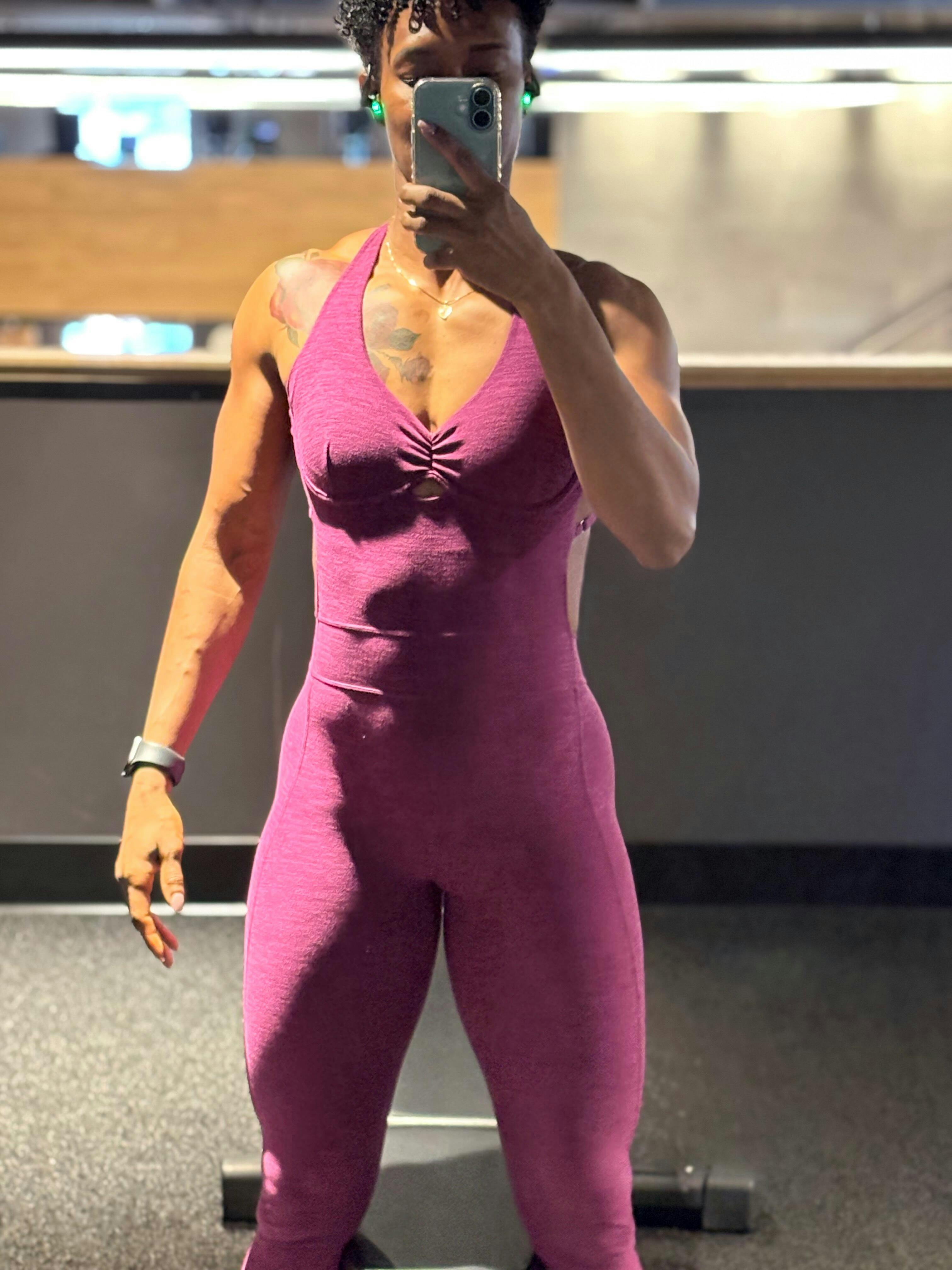 The V-cut back and scrunch-butt detail give your curves that signature lift, while criss-cross straps and an open-back design make a bold statement whether you’re working out or going out. With its waist-cinching fit and ultra-smooth fabric, this one-piece is built to enhance your shape and empower your movement.